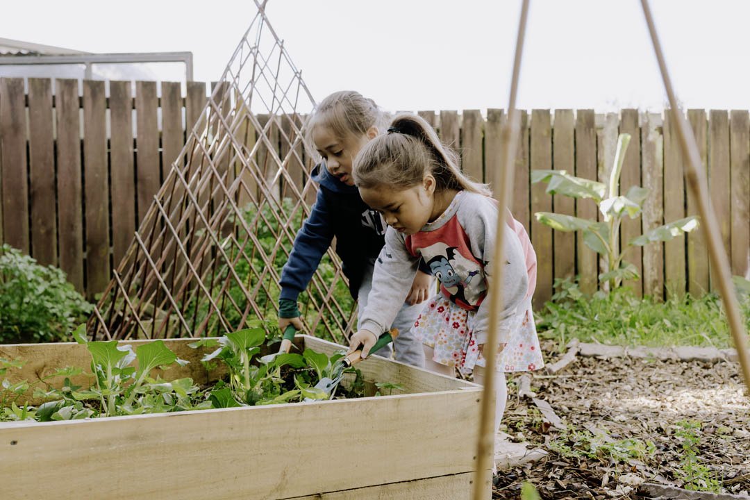 Outdoors we have two nature inspired age-based playgrounds. This outdoor environment is complemented with naturally landscaped gardens, a separate veggie patch and an emphasis on sensory and water-based learning, this is a fantastic space where children can explore the natural environment and enjoy the fun of playing outdoors.